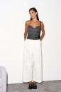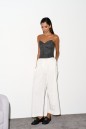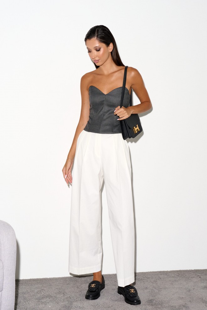 Корсет с фигурным вырезом выполнен из костюмной ткани с принтом.