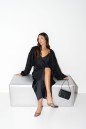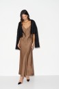 Кардиган свободного укороченного кроя выполнен из черного ворсистого полотна с пайетками. Характеристики: укороченная длина, свободный крой, свободный широкий рукав, подкладка. Длина по спинке 40 см, длина рукава от горловины 77 см.