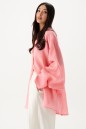 Рубашка свободного кроя выполнена из натурального полотна розового цвета. Характеристики: рубашка прямого свободного кроя, горловина стойка. Застежка центральная на петли пуговицы, рукав акцентный объёмный, крой рукава «летучая мышь» , спинка отрезная с декоративной сборкой. Длина по спинке 80 см, длина рукава от горловины 76 см.