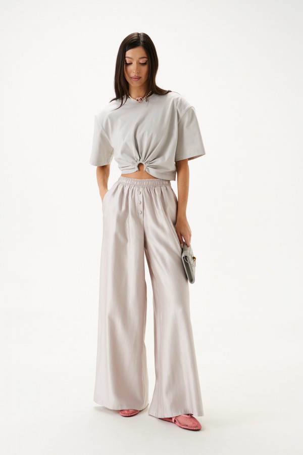Рубашка прямого свободного кроя. Выполнена из мягкого плотного хлопкового полотна. Воротник отложной. Рукав втачной, немного спущен, с широкой манжетой с пуговицей. По переду в области груди имитация клапанов карманов. Спинка отрезная. Застёжка центральная на путли-пуговицы. Длина спинки 75 см, длина рукава 52 см