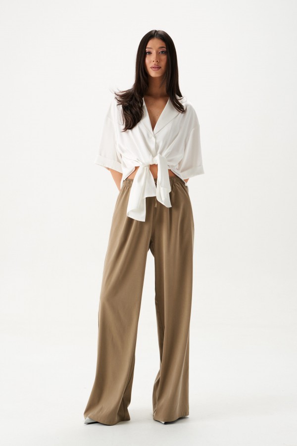 Блузка прямого свободного кроя выполнена из текстильной ткани белого цвета. Характеристики: отложной воротник, застежка центральная на петли пуговицы, спущенная линия плеча, по бокам изделия разрезы 31см, рукав кароткий прямого кроя. Длина рубашки 75 см, длина рукава от края горловины 44см.