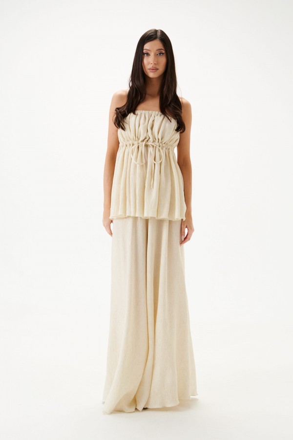 Блузка прямого свободного кроя. Воротник отложной на стойке. Рукав одношовный, втачной, со спущенной линией плеча. По низу рукава притачная манжета. На переде по линии груди настрочены прямоугольные клапаны. Спинка цельнокраеная. В боковых швах обработаны разрезы.