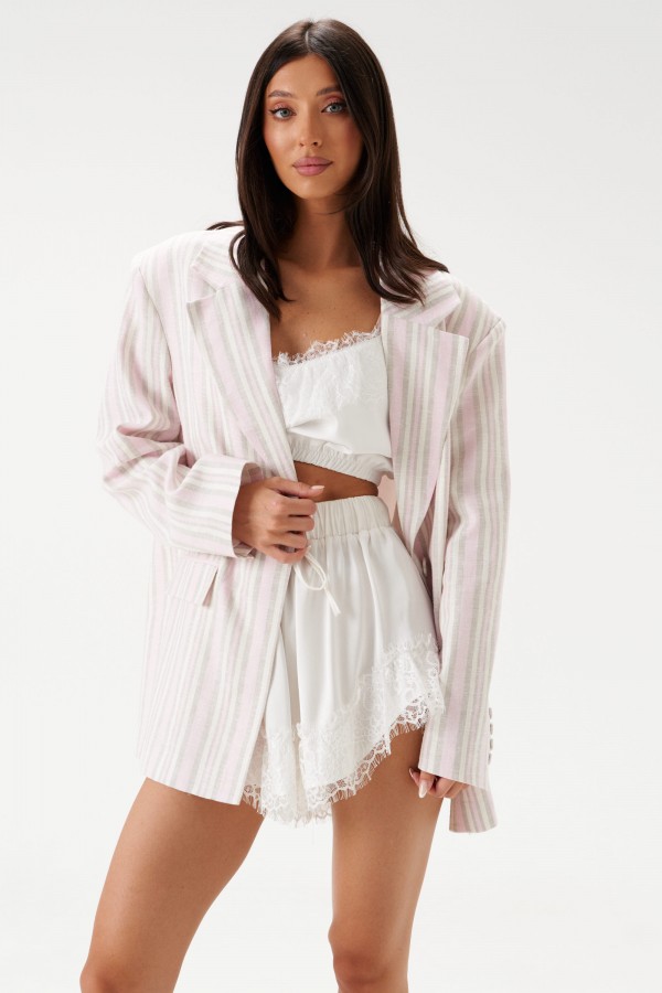 Блузка выполнена из струящейся ткани белого цвета. Характеристики: укороченная блузка, регулируемые бретели, фигурный вырез горловины, по горловине ажурное кружево, низ изделия на резинке. Длина по спинке 21 см.