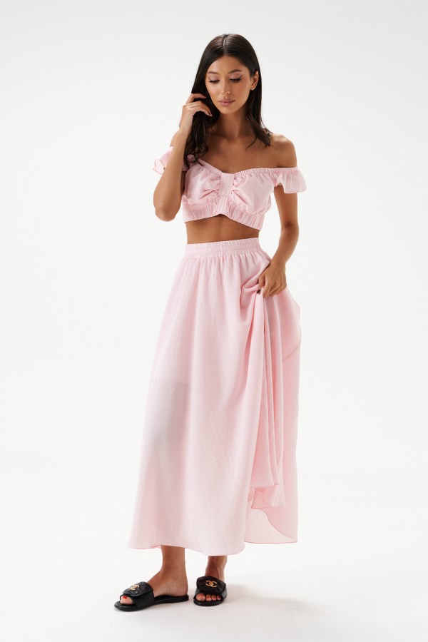 Блузка свободного кроя, выполнена из полупрозрачного натурального полотна RAMI. Прямой свободный крой, рукав широкий вточной, низ присборен на фигурную узкую манжету, V-образный вырез, лиф отрезной по линии талии, застежка центральная на шнурки-завязки. Длина по спинке 64 см, длина рукава от края горловины 68 см.