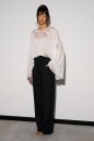 Блузон свободного прямого кроя, выполнен из тонкого белого полотна. Характеристика: свободный крой, овальная горловина. Рукав втачной, свободного кроя, расклешенный к низу. Спинка цельнокроеная, по переду изделия срез. Длина по спинке 71см, длина рукава от края горловины 79см.