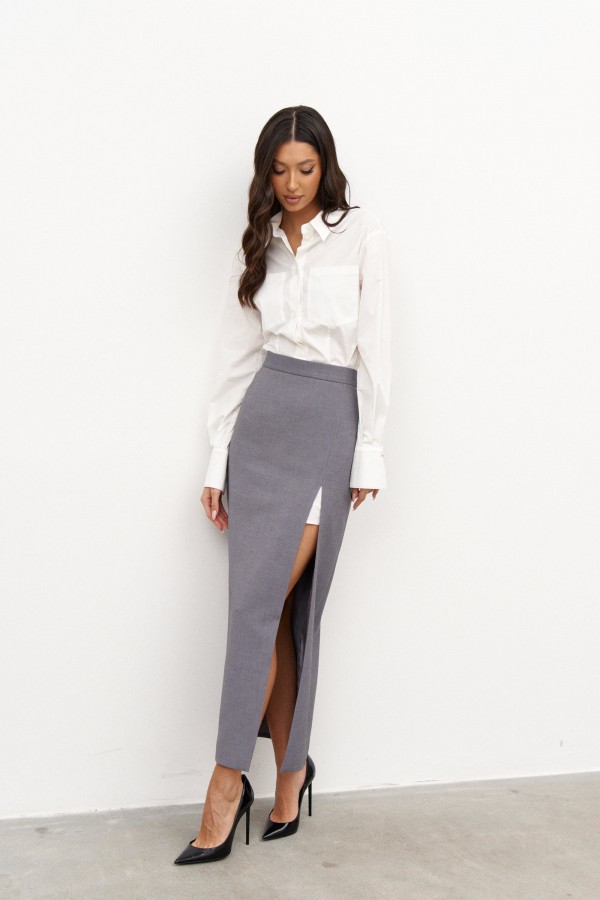 Рубашка приталенного силуэта выполнена из хлопкового белого полотна. Характеристики: приталенный силуэт, отложной воротник на стойке, застежка центральная на петли пуговицы, по переду изделия карманы, по низу рукава манжета на пуговичке. Спинка цельнокройная. Длина 82 см, длина рукава 78 см (от края горловины).