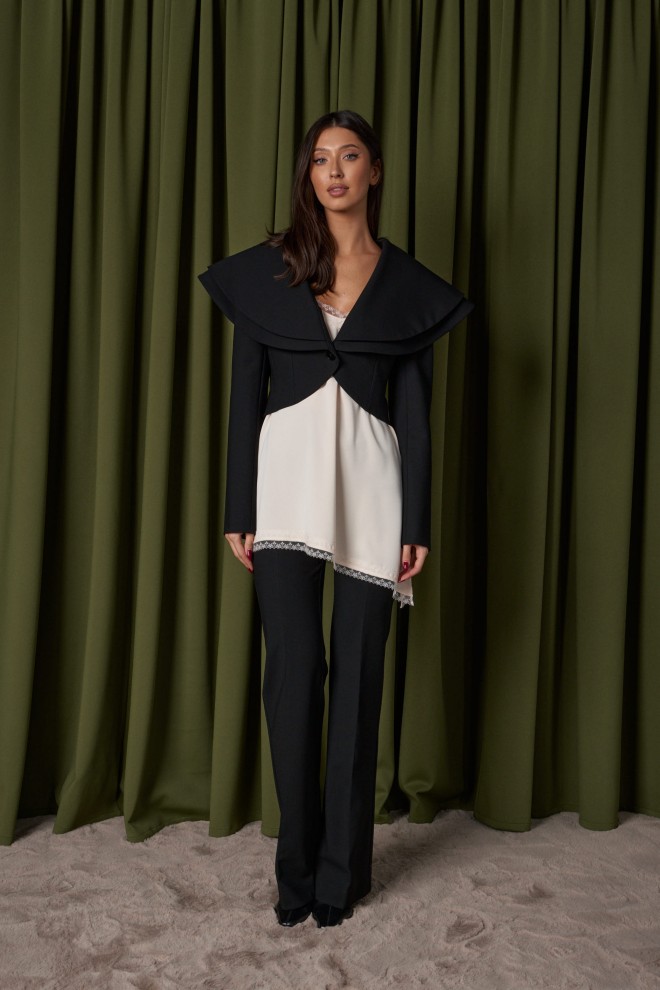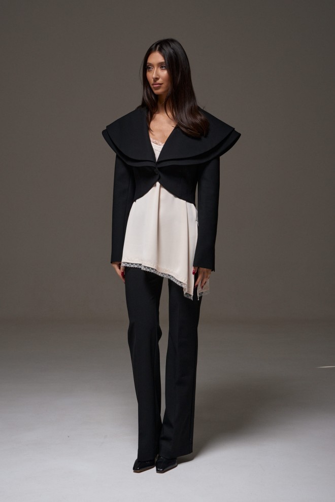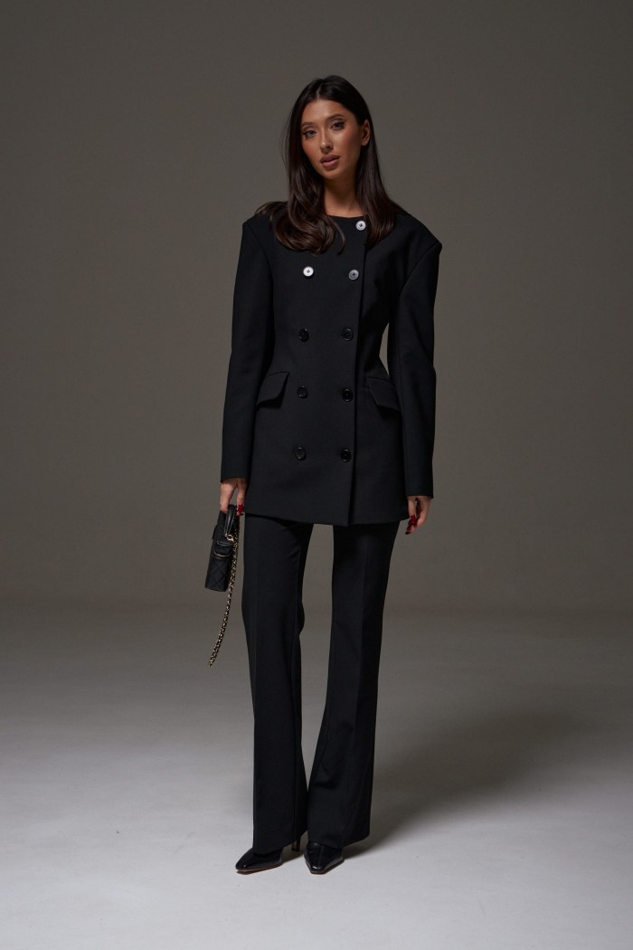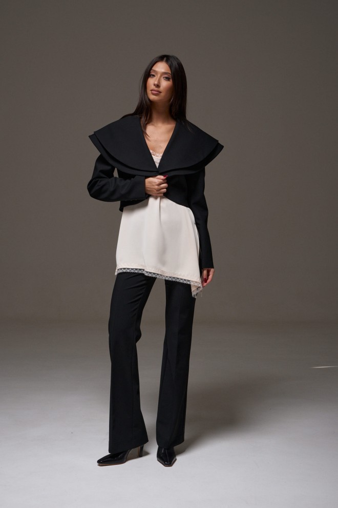 Брюки полуприлегающего силуэта с разведением к низу. Классические брюки базовый элемент гардероба. Идеально сочетаются с любым верхом. Характеристики: полуприлегающий силуэт, пояс стабильный, по переднему и заднему полотну брюк стрелки, по заднему полотну прорезные кармашки «обманки», длинна брюк по внутреннему шву 84 см.