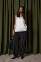 Брюки-джоггеры. Выполнены из мягкого ворсистого трикотажного полотна темно-серого цвета. Характеристики: прямой крой, пояс на шнурке-резинке с фиксатором, в боковых швах карманы, штанина внизу на резинке с фиксатором. Длина 1073см.