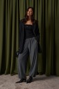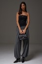Брюки-джоггеры. Выполнены из мягкого ворсистого трикотажного полотна серого цвета. Характеристики: прямой крой, пояс на шнурке-резинке с фиксатором, в боковых швах карманы, штанина внизу на резинке с фиксатором. Длина 110 см.