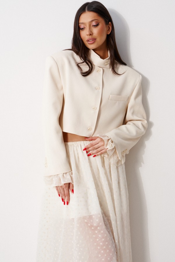 Брюки свободного кроя, зауженные к низу, выполнены из хлопкового полотна светлогоы цвета. Характеристика: свободный крой, брючины заужаются к низу, пояс на резинке, имитация гульфика, в боковых швах карманы. Длина по боковому шву 96 см.