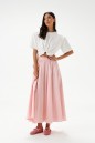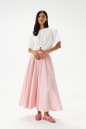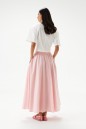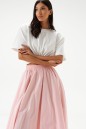 Футболка прямого кроя, выполнена из хлопкового полотна белого цвета. Характеристика: укороченая, прямой свободный крой, горловина овальная, рукав слегка спущен, подплечники, спереди декоративная сборка на элемент-полукольцо . Длина по центру спинки от края горловины 40 см, длина рукава от края горловины 39 см.