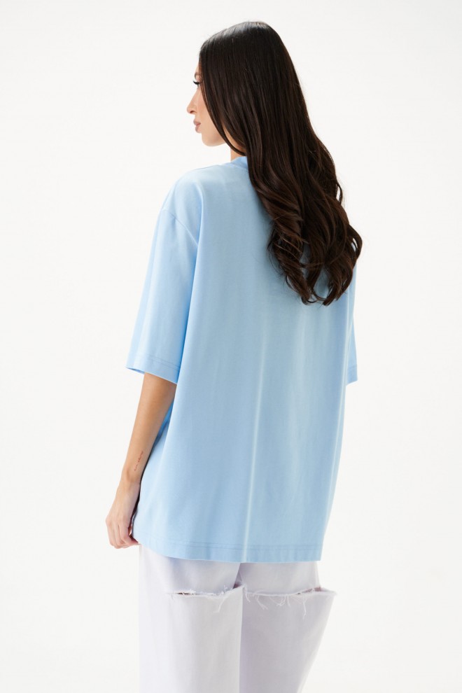 Футболка прямого кроя. Выполнена их хлопкового полотна. Горловина круглая с довязом. Рукав втачной. Длина рукава 29 см. Длина спинки 70 см