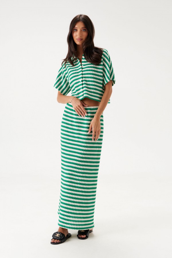 Джемпер свободного кроя. Выполнен из мягкого вязаного трикотажа. Воротник рубашечного типа. Рукав цельнокроеный, спущенный. Застёжка центральная - пуговички. Длина рукава от горловины 37 см. Длина спинки 44 см