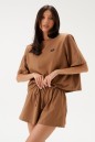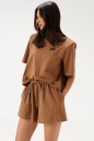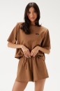 Футболка прямого свободного кроя с акцентными плечами выполнен из хлопкового полотна.