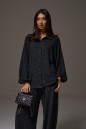 Джемпер прямого кроя, выполнен из трикотажного ворсистого полотна черного цвета. Характеристика: прямой крой, воротник стойка, застежка центральная планка на петли-пуговицы, по низу изделие собирается на резинку с фиксаторами, рукав втачной на резинке, немного спущен. Длина рукава от края горловины 75 см, длина изделия по спинке 65 см.