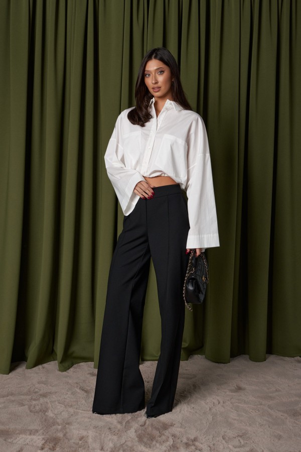 Джемпер выполнен из трикотажного полотна молочного цвета. Характеристики: прмой силуэт, овальная горловина. В области горловины застежка на петли пуговички. Рукав втачной, длина 63 см. На внутренней стороне рукава, на месте шва есть разрез для большого пальца. Длина по спинке 52 см.