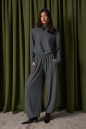 Джемпер укороченный прямого свободного кроя. Выполнен из мягкого трикотажа светло-серого цвета. Горловина-стойка, в естественную складку. Есть подплечники (съёмные). Длина рукава от линии втачивания 61 см. Длина спинки 50 см