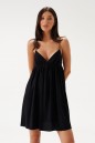 Платье свободного кроя. Выполнено из натурального полотна черного цвета. Характеристики: юбка-солнце, на подкладке, по спинке сборка на резинке. Длина спинки 53 см.