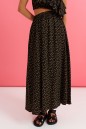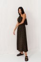 Характеристики: полуприлегающий силуэт, открытое плечо, в области горловины нашит широкий волан из ткани основного изделия, отрезное с декоративным вырезом по отрезу, по линии отреза по нижней и верхней части изделия резинка. Длина от верхнего края плеча 130 см.
