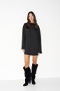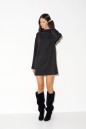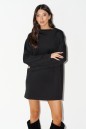 Платье прямого свободного кроя выполнено из трикотажного полотна черного цвета. Характеристики: прямой крой, цельнокройная горловина стойка, вточной рукав свободного кроя, по низу изделия отделочная строчка. Длина по спинке 84 см, длина рукава от края горловины 75см.