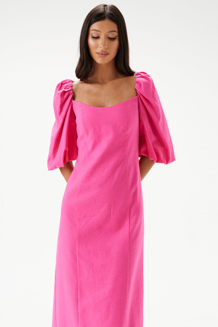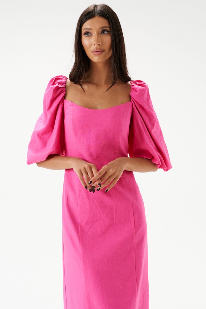 Платье прилегающего силуэта, выполнено из льняного полотна цвета фуксия. Характеристики: подкладка,