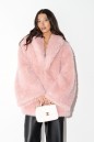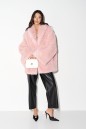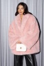 Выполнено из фактурного мехового полотна розового цвета. Характеристики: прямой крой, брендированная подкладка, застёжка центральная крючки, рукав вточной свободного прямого кроя, в боковых швах карманы. Длина по спинке 77 см, длина рукава от края горловины 75см.