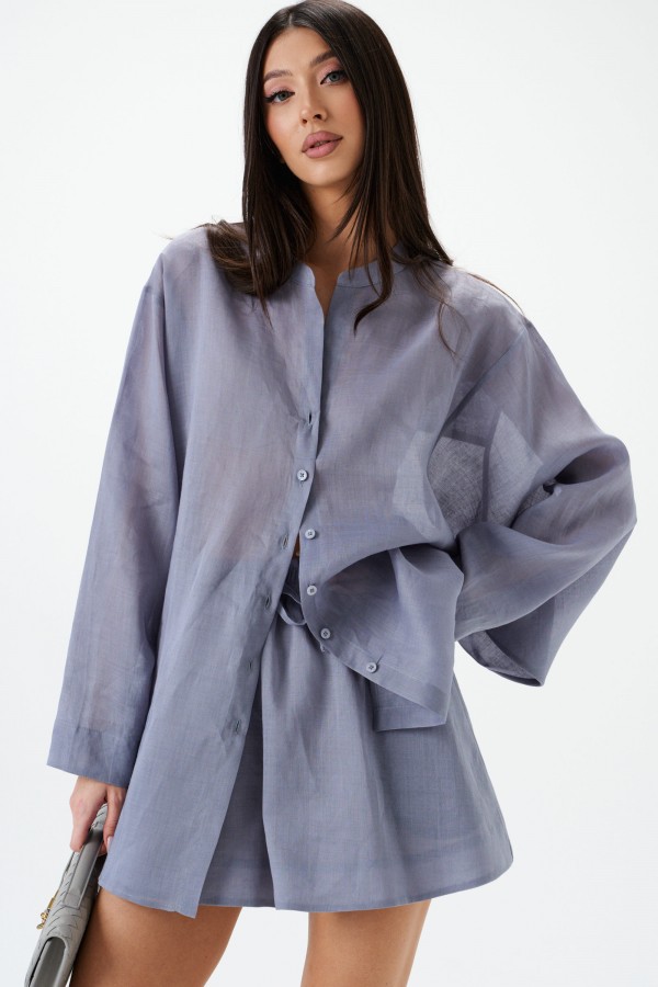 Шорты свободного кроя. Выполнены из лёгкого натурального полотна – рами. Пояс на резинке с завязками. В боковых швах карманы. Есть подкладка. Длина 40 см