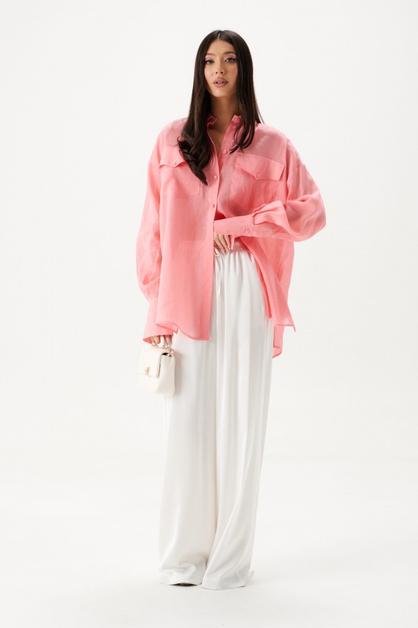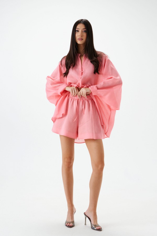 Шорты свободного кроя. Выполнены из лёгкого натурального полотна – рами. Пояс на резинке с завязками. В боковых швах карманы. Есть подкладка. Длина 40 см