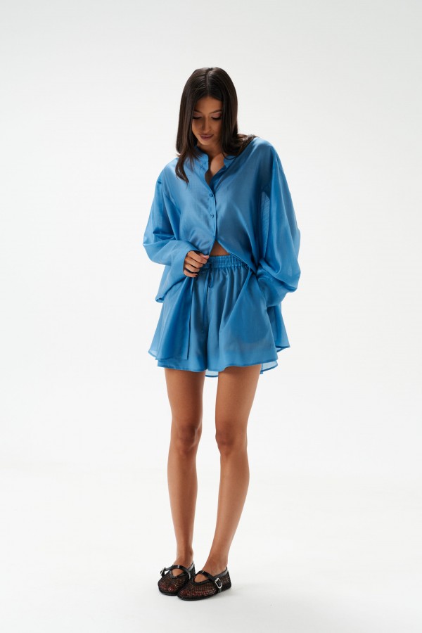 Шорты свободного кроя. Пояс на резинке с завязками. В боковых швах карманы. Есть подкладка. Длина 40 см
