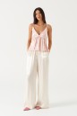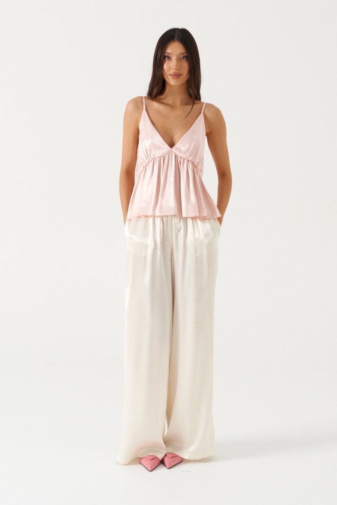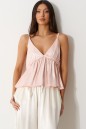 Топ свободного кроя с акцентным лифом, выполнен из мягкой струящейся ткани розового цвета. Характеристика: V-образный вырез декольте, на регулируемых бретелях, лиф двойной, с фигурным отрезом. Длина по боковому шву (с учётом лифа) 33 см.