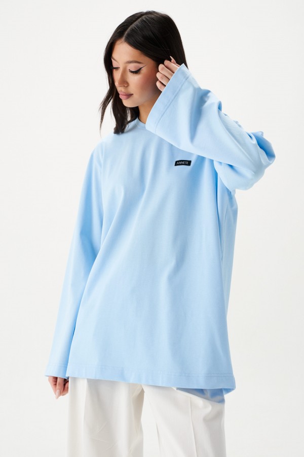 Юбка А-образного силуэта длины мини из тонкого денима. По переду изделия объёмный декоративный бант. В заднем среднем шве изделия потайная молния. Длина по боковому шву 39 см.