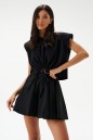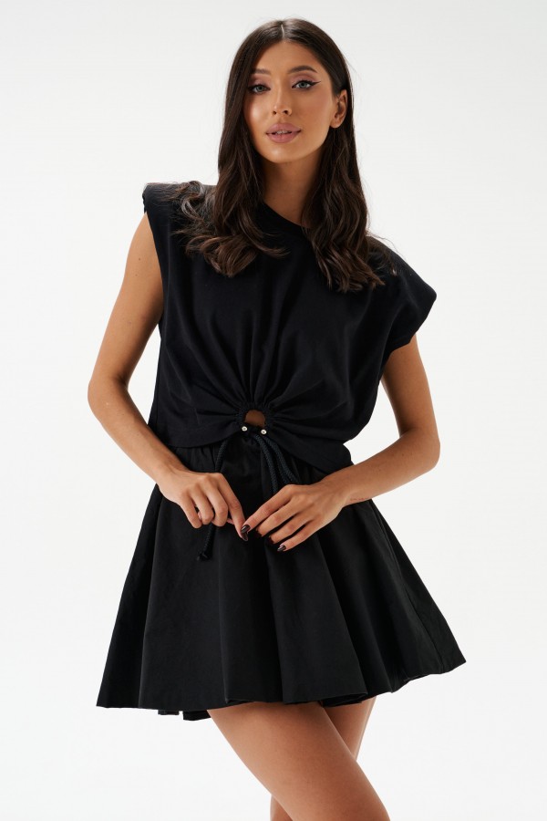 Юбка-баллон, выполнена из текстильной ткани черного цвета. На хлопковом подкладе.Расширенная к низу. Пояс на резинке со шнурком-завязкой. Длина 38 см