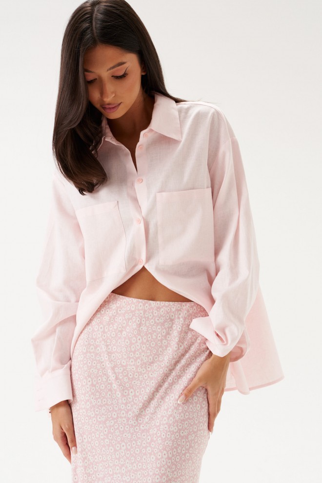 Юбка полуприлегающего силуэта выполнена из струящегося полотна розового цвета в мелкий цветочек. Характеристики: полуприлегающий силуэт, пояс на резинке. Длина по боковому шву 110 см.