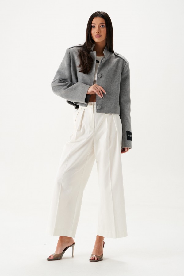 Юбка-мини. Выполнена из плотного текстильного полотна бежевого цвета. С подкладкой. Силуэт - трапеция. По всей окружности складки. Пояс стабильный. Застёжка пуговица и молния. В боковых швах карманы. Длина 43 см (с учётом пояса)
