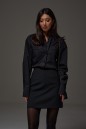 Юбка прямого кроя. Выполнена из текстильного полотна черного цвета. Характеристика: подкладка, по переду и сзади по две выточки. Застёжка потайная тесьма молния в среднем шве задней части изделия. Длина юбки по боковому шву 41 см.