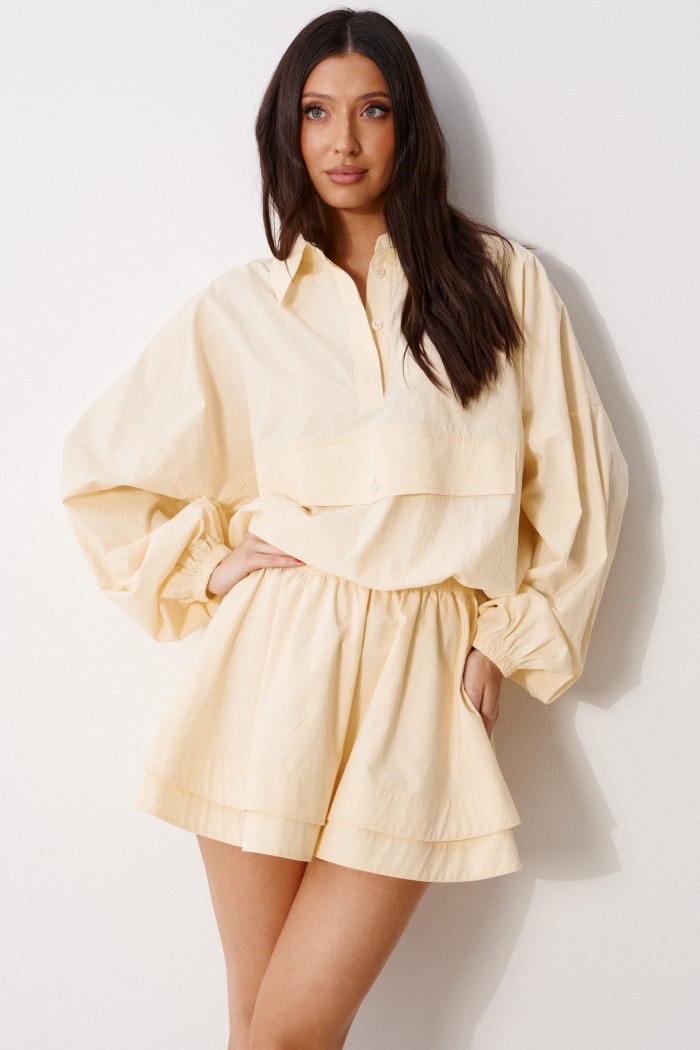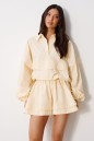 Юбка свободного кроя, силуэт солнце. Выполнена из хлопковой ткани, в два слоя. Характеристики : пояс на резинке, длина по боковому шву 37.5 см
