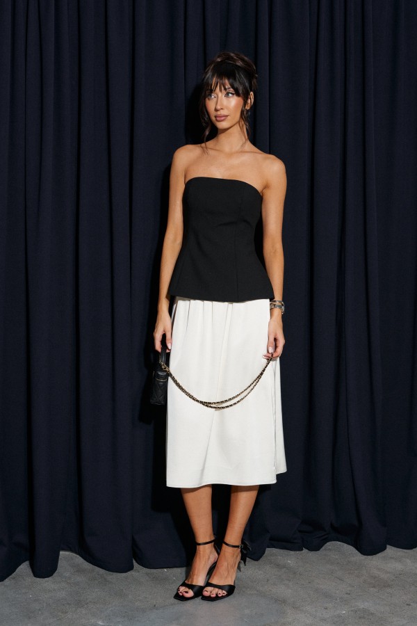 Жакет прямого кроя, с баской по нижней части изделия. Выполнен из костюмной ткани. Характеристики: брендированая подкладка, отложной воротник, застежка центральная на пуговички, рукав втачной. Длина по спинке от края горловины 61 см, длина рукава 83 см.