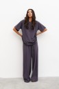Комплект 2-х предметный, состоит из футболки и брюк выполнен из хлопкового полотна цвета графит. Характеристики: футболка прямого свободного кроя, овальный вырез горловины, рукав втачной спущенный . Длина по спинке от края горловины 70 см, длина рукава от края горловины 37 см. Брюки прямого свободного кроя, пояс на резинке, в боковых швах карманы. Длина брюк по боковому шву 112 см.