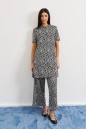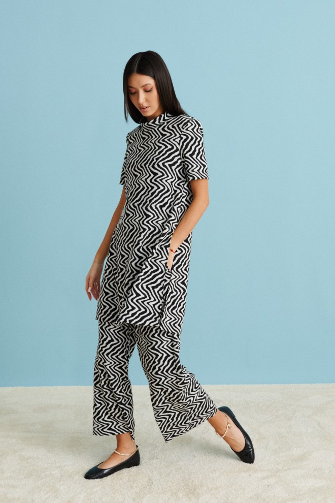 Кюлоты прямого свободного кроя с комфортной эластичной резинкой выполнены из трикотажного полотна с абстрактным принтом. Образ дополнит джемпер А 674, А667 из действующей части коллекции.