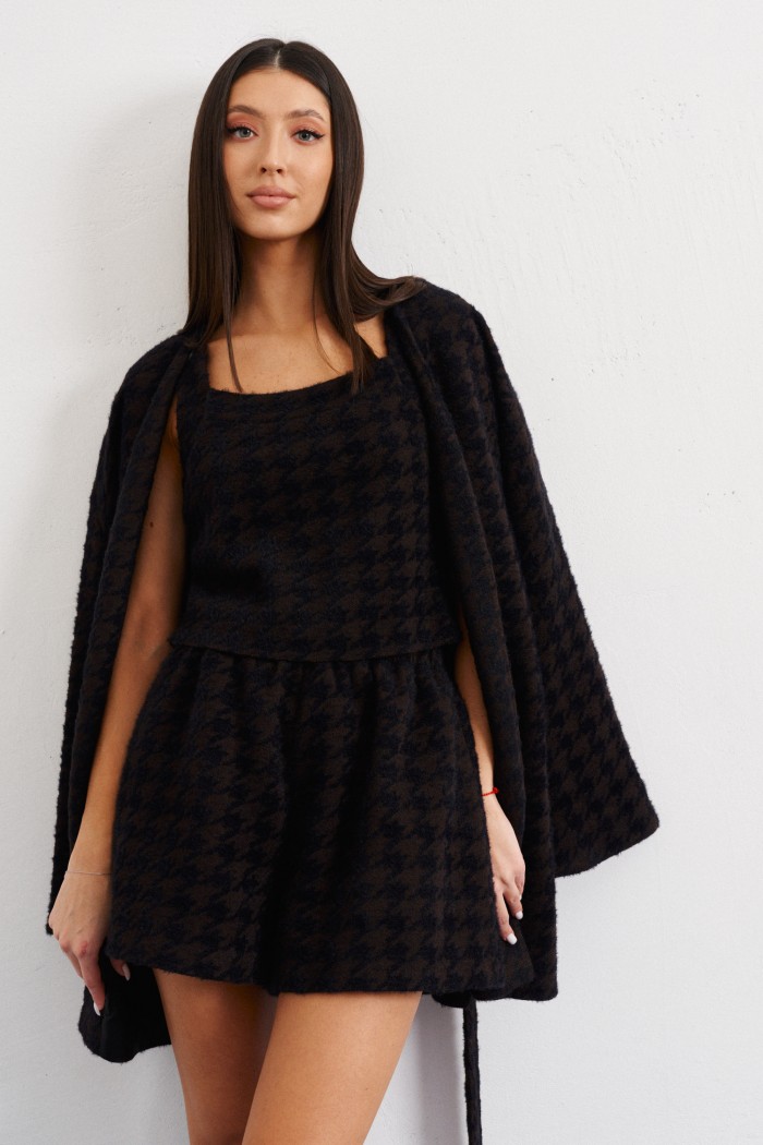 Топ на широких бретелях выполнен из фактурного плотного полотна с геометрическим абстрактным принтом. Образ дополнит юбка артикул А317 из действующее части коллекции.