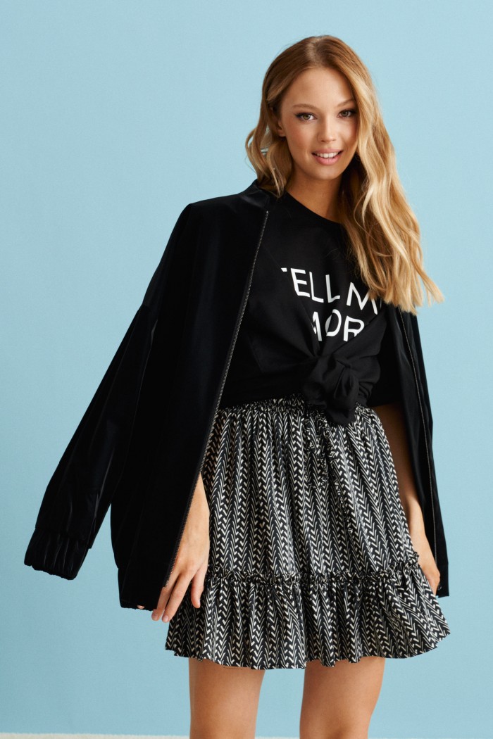 Кокетливая короткая юбка выполнена из полотна с абстрактным принтом. Отличный вариант юбки для создания образов на каждый день в любое время года. Сочетается с рубашками, топами, свитерами, жакетками, футболками.