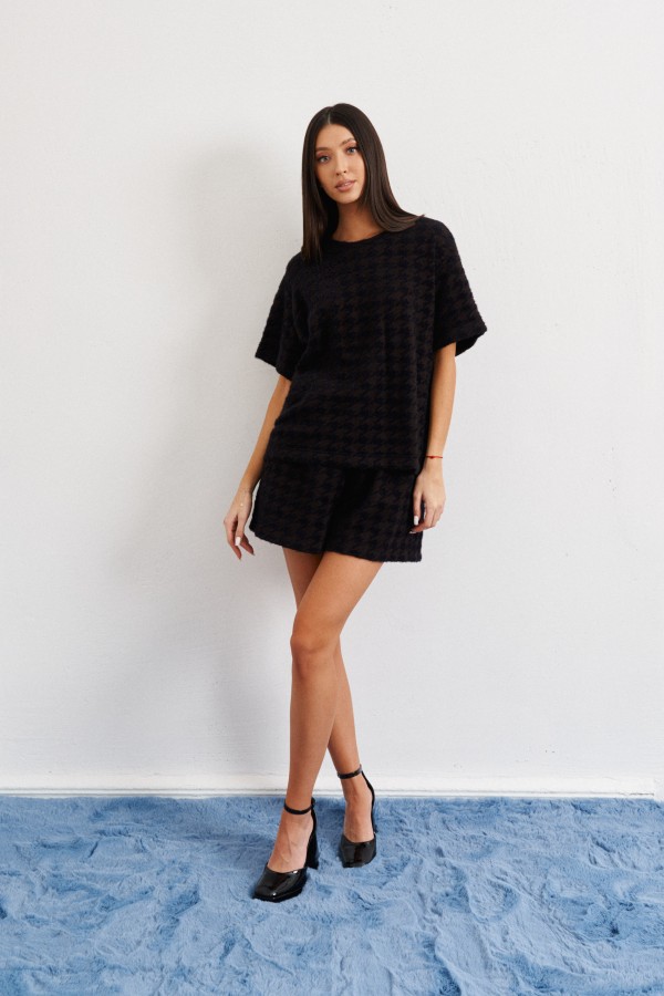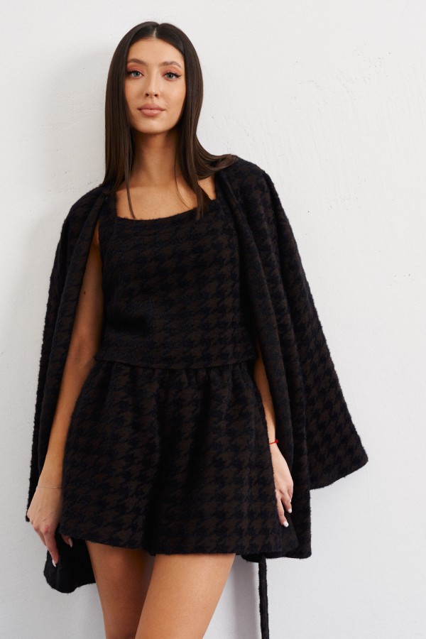 Миниатюрная юбка прилегающего силуэта выполнена из фактурного полотна с геометрическим абстрактным принтом. Образ дополнит топ артикул А672, джемпер артикул А668. жакет А5125.